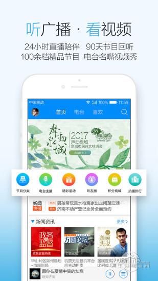 叮咚FM是济南电台手机台,是由济南人民广播电台倾力打造的官方移动网络广播平台和新闻发布平台,目前已推出iOS系统、安卓系统和微网页版手机应用客户端。叮咚FM立足本地,服务市民,依托强大的互联网传播渠道,海量的节目资源和特色的社交功能,创意运用音频、视频、图文等丰富的展现形式,打造广播收听新风尚,开拓商业合作新模式。