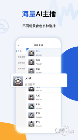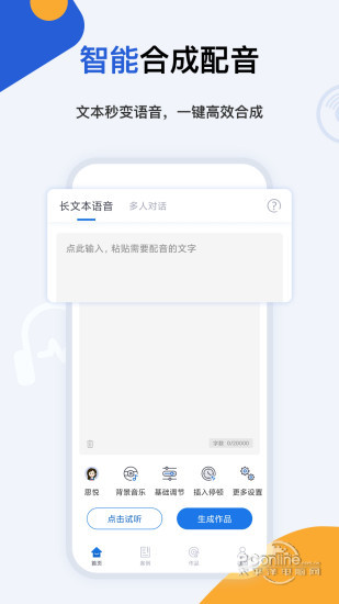 多言文字转语音助手提供专业的广告配音合成、文字转换语音服务,提供海量配音模板、专业虚拟主播,支持调节音量,语速,添加背景音乐等,一键保存音频到本地,使用简单便捷。 多言文字转语音助手功能 1、AI语音合成:45种配音人员,涵盖多音色、多语种的配音形式; 2、语音设置:支持音量、语速调节,插入停顿、添加背景音乐、循环设置等; 2、一键导出分享:一键分享QQ、微信、朋友圈等,支持文件本地导出; 3、海量配音模板:各类热门样音模板,可直接试听使用; 4、多语音合成:可添加多角色配音,男女对话,不同角色混合配音等。 多言文字转语音助手适用场景 1、地摊叫卖、广告促销、商场宣传活动合成配音; 2、有声朗读,个性听书; 3、儿童配音:为孩子制作儿童读物; 4、英语配音:可以作为听力材料、电影台词、广告语、宣传片等英语配音; 5、方言配音:四川方言、湖南方言、东北方言、台湾话、粤语等配音制作。