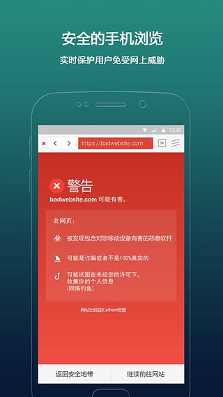 Carbon为用戸免费提供优质的手机安全性系统,所有经由Carbon进入的网站,均会经过扫瞄并找出是否含有以下各种潜在的危险: