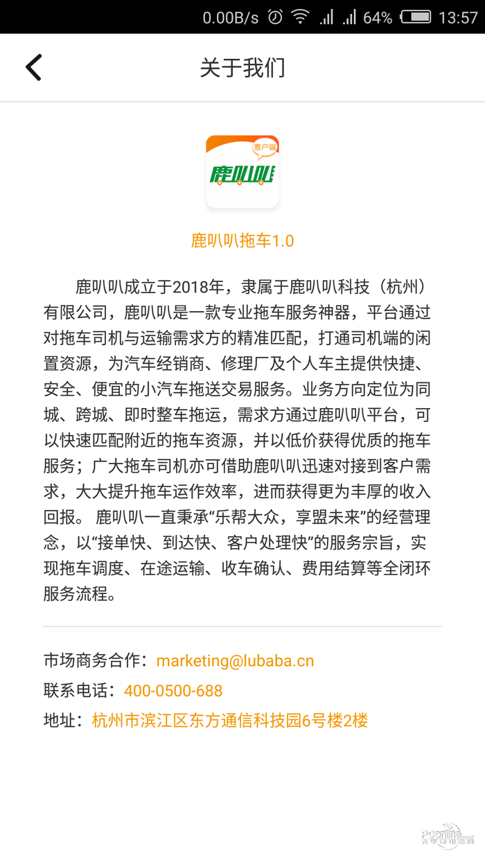 鹿叭叭是一款专业拖车服务应用,通过对拖车司机与运输需求方的匹配,打通司机端的 闲置资源,为汽车经销商、修理厂及个人车主提供快捷、安全、便宜的小汽车拖送交易服务.业务方向定位为同城、跨城、即时整车拖运,需求方通过鹿叭叭,可以快速匹配附近的拖车资源,并以低价获得优质的拖车服务;广大拖车司机亦可借助鹿叭叭迅速对接到客户需求,大大提升拖车运作效率,进而获得更为丰厚的收入回报. 鹿叭叭一直秉承“乐帮大众,享盟未来”的经营理念,以“接单快、到达快、客户处理快”的服务宗旨,实现拖车调度、在途运输、收车确认费用结算等全闭环服务流程.