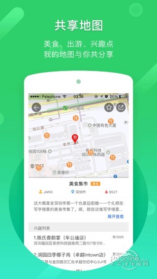 共享地图: 创建美食、出游位置点合集,分享给他人。