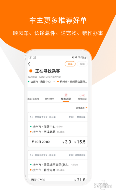 主要提供顺风车、长途急件、送宠物,帮忙办事