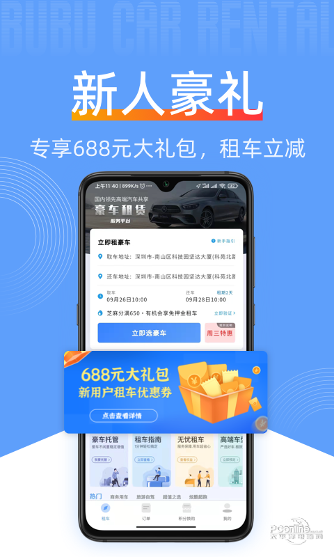 【福利活动】新用户注册登录即领688元租车大礼包;享高性价比租车体验,豪车轻松驾.