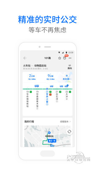 数据精准 —精准预估公交到达时间,从此告别等车焦虑,从容出行。 —深耕公交领域八年,大数据算法保证实时信息的高准确率,公交位置、发车时间、站点线路了然于心; —专业的路线规划,地图导航,公交、地铁、打车、骑行等多种出行方式随心选。便捷好用 —智能定位附近公交站点,一键切换候车站台,多线路对比更简单; —常用线路地点一键收藏到首页,更快找到您要乘坐的线路,做您的智能出行助手; —公交位置实时跟踪,上/下车到站及时语音提醒,再也不用担心错过车、坐过站,为您的行程保驾护航;功能全面 —路线规划功能全新升级,多种换乘方案对比,为出行提供优质的解决方案; —独家的发车时间预测,历史发车时刻表功能,缓解您迟迟等不到车的焦虑; —赶车闹钟伴你行,告别慌忙急躁,出门更从容。