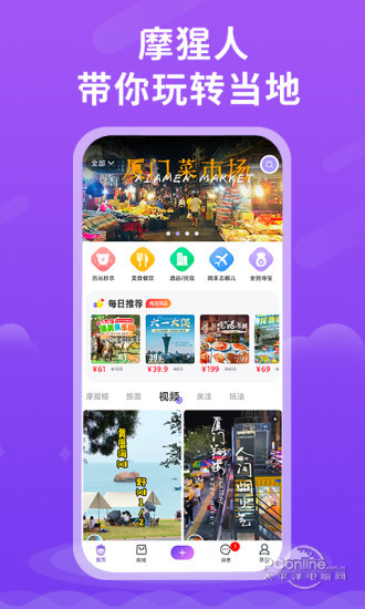 摩猩人是一款集旅行、生活体验、旅游产品销售及社交功能为一体的功能性APP,对接当地旅游达人深度体验当地风土人情。同时摩猩人是一群扎根全球各地的土著玩家,他们是各个领域的达人,能为旅行爱好者提供千万种独特生活体验。 ①新用户下载注册,即送10元无门槛优惠券。 ②用户分享社交:图文、视频、游记、攻略等各种真实有效的内容社区。随时随地可搜索当地吃喝玩乐攻略、游记,用户还可以即时发布自己的旅途见闻,留存和分享自己的旅行记忆。如果遇到志趣相投的用户,也可一键私聊,开启社交模式,寻找同游伙伴。 ③特惠商城:一个专注本地吃喝玩乐的商城。提供优质优惠的美食出游玩乐产品,如多种旅游产品、景点门票、本地及周边的吃喝玩乐等等,品类丰富、价格实惠。 ④“玩法一栏”,还有很多旅游攻略、自驾游、周边游、亲子游、周末游、游轮、自由行、情侣出游等多种旅游产品任用户挑选,满足不同年龄层次的多种出行需求。