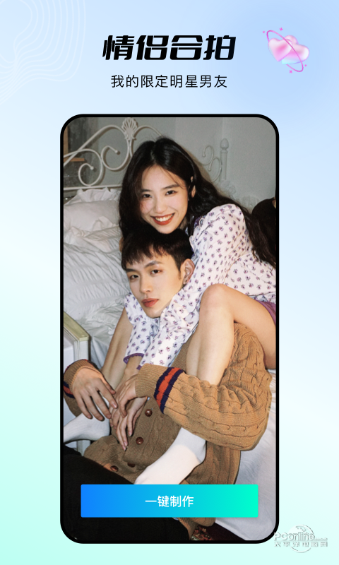 和喜欢的人一起拍个甜蜜的视频吧.只需上传你们的照片,各种视频风格任你选择,更有各类西式、中式婚纱模板,一键生成高清婚礼视频.我和我的明星男友官宣的视频有了嘻嘻~~
