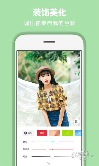 一键美颜,仙女就是你。智能五官精准定位,瘦脸、粉底、唇彩、腮红、修眉、染发等多种功能呈现自然好气色