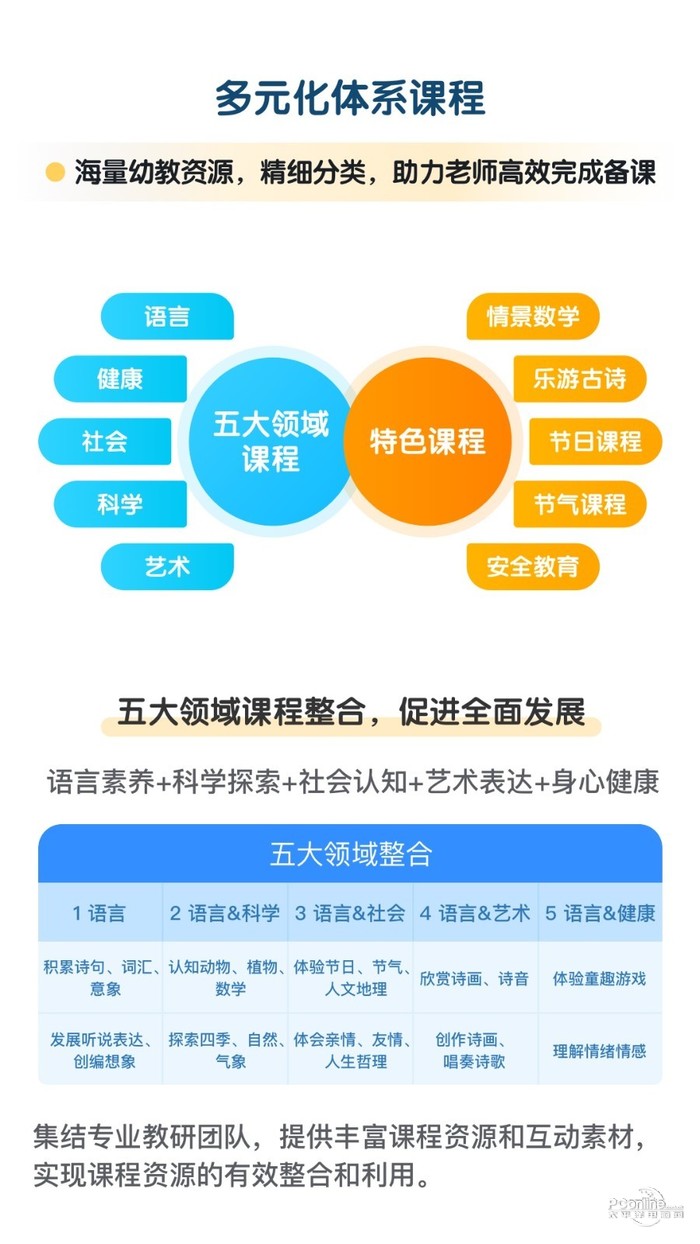 1、多元体系课程:根据小、中、大不同年龄段发展特点设计的高质互动课件1000+,涵盖幼儿园高频活动主题,同时提供安全教育、24节气、幼小衔接等特色体系课程,实时紧跟热点,持续更新内容,满足老师五大领域教学所需;