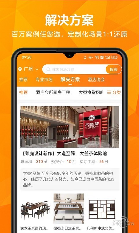 玖诚一品拥有百万级别酒店、商务、办公、家居、食堂、经营场所场景定制化案例,您只需要选择您所需的场景类型,找到您想要的场景搭配,玖诚一品采购秘书将1:1还原场景,同时也为您量身定制特色场景区域,万名设计师在线为您分忧,助您快速开店完善场景设置.