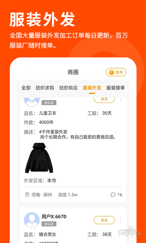 【服装订单外发】 服装外发加工订单每日更新,服装厂随时接单.