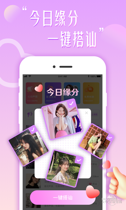 在这里可以一键匹配附近有缘异性、24小时文字聊天、语音连麦、视频约会、缘份绣球等,多场景的为上千万用户创造更多恋爱机会.
