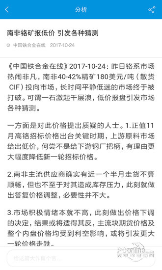铁合金在线APP是基于cnfeol.com的丰富内容,为您提供的官方Android APP,下载保存至手机桌面,您可随时随地掌握新动态和资讯, 准确把握商机。 它涵盖了”白金”信息、价格、供求、分析、新闻栏目,可全方位满足您的信息需求。同时,您可以自主发布产品信息,供所有用户查阅浏览,寻求更多贸易机会。此外,您还可以根据自己的需要,自主添加或删除产品系列,查询阅读信息更便捷。 只需要一个帐号 中国铁合金在线主站(www.cnfeol.com)、铁合金在线APP、手机铁合金在线(m.cnfeol.com)、微信公众服务(www-cnfeol-com)信息阅读权限同步享用。