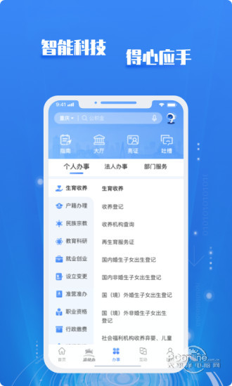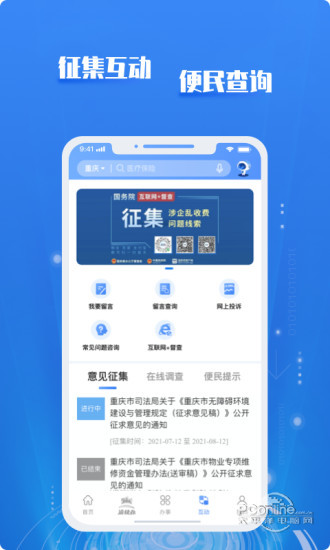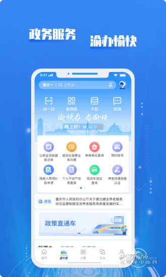 “重庆市政府”APP又名“渝快办”APP,“渝”代指重庆,“渝快办”取“愉快办”的谐音,寓意APP秉持让广大市民办事办得愉快的运行理念。 首页,为用户提供重庆要闻、信息公开、政策解读、访谈、新闻发布会相关内容。 渝快办,包含了几大重点功能区域,为用户展示重点事项、信息通告、服务专区、新上线服务和个性化服务。 办事,为用户提供事项办理入口,展示事项办事指南;事项多维度分类涵盖个人办事、法人办事、部门服务;线下大厅一键导航,提供亮证服务,吐槽(用户信息反馈)。 互动,为用户提供互联网+督查、征集留言、问题咨询等相关内容。 我的,为用户提供专属的,便捷的个性化服务。我的办事、我的证件、我的账户、我的缴费等相关内容。