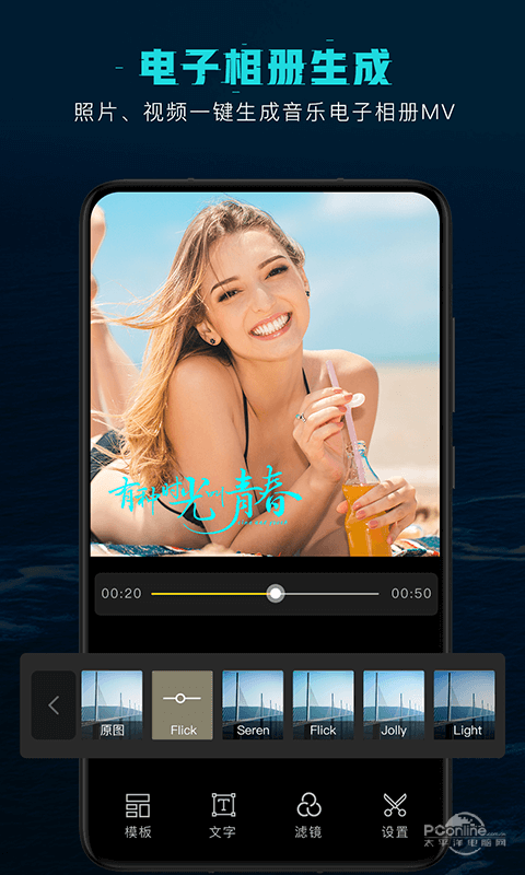 - 相册MV、AE模板、精美滤镜、字幕、视频涂鸦、视频转场