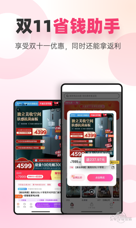 我们与淘宝、拼多多、京东等主流电商平台深度合作,为您提供便捷、安全、值得信赖的返利服务.
