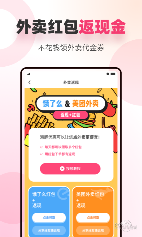 外卖返现:每天领大额优惠券,下单后还能领返现.