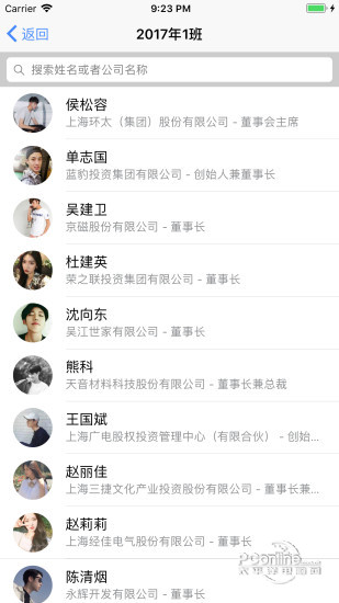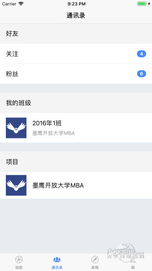 我的项目:通讯录的首页会列出学生所在的项目,项目中会按照入学年份列出班级信息,可以按班级浏览和检索校友信息,也可以按照整个项目浏览和检索校友信息;