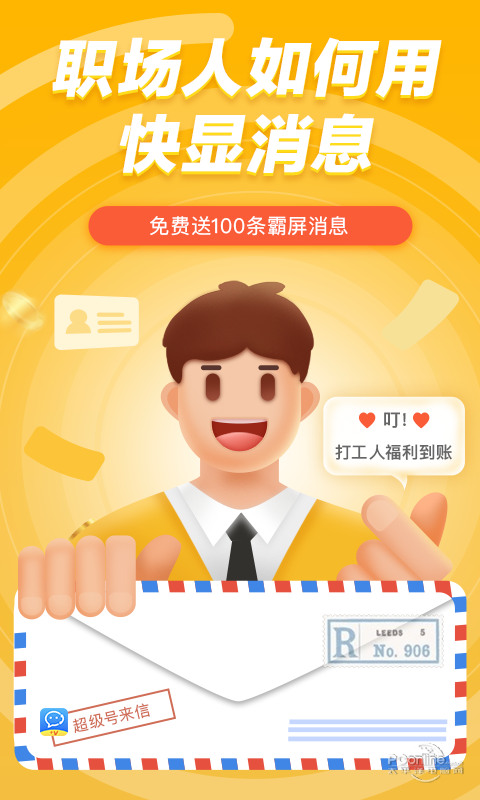 2、实名快显消息:发送霸屏显示短信,消息强提醒功能