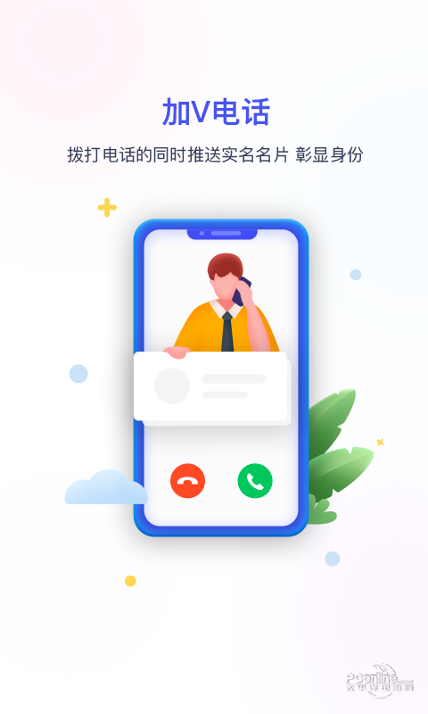 1、实名加V电话:拨打加V电话,同时推送实名名片和个性签名