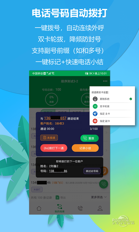 电销电话APP,是一款个人电话销售管理软件,提供智能导入、自动拨打、外呼统计、回访提醒等业务功能.