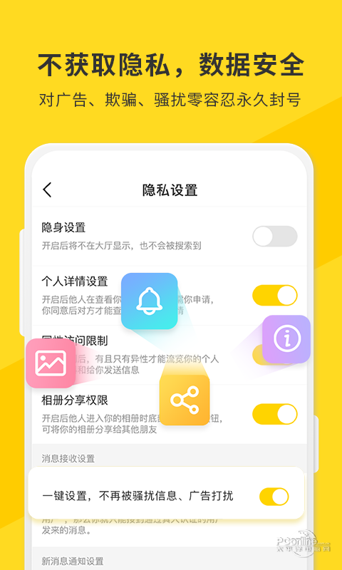 必需经过真人认证才能主动发起聊天,在你没回复消息之前陌生用户最多只能给你发送三条消息,你还可以设置只接受好友消息或者会员消息和通过其他认证过后的用户消息,也可设置对方查看你资料联系你之前先向你发起申请,必须申请通过后方可查看你的资料和联系你.土豆系统AI智能算法风控机制也会对异常风控判断,一但发现用户触碰系统防骚扰机制立即会对用户进行警造或者封号封设备处理.