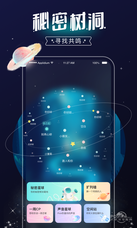 【秘密星球】:把压在心底无法释怀的心事(可以是恋爱情感、成长经历、日常心情、创业历程、留学经历)用语音记录形式去定格,用声音传递心情,你可以讲给自己听,也可以分享到“漂流瓶”讲给大家听
