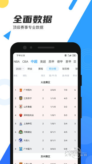 5.数据频道提供德甲、意甲、西甲、欧冠、中超、篮球、CBA、英超等积分数据榜