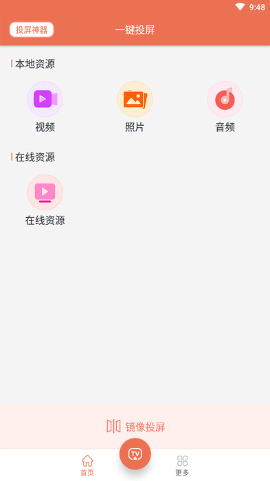 一键投屏APP功能1、不仅支持本地音乐投屏,还可以在电视上推送手机上的视频和照片。