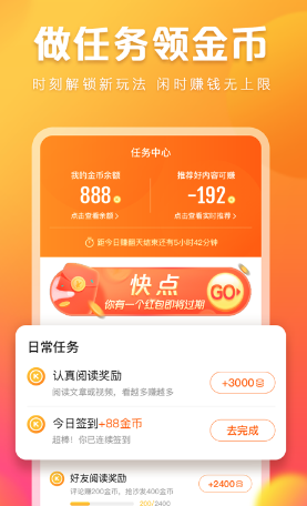 快手快看点下载测评1、每天不断转发分享平台文章资讯给好友,好有点击就能赚取奖励,分享阅读赚得越多。