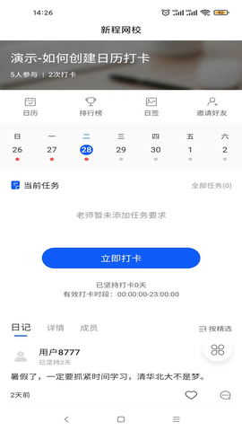 新程网校app优势1.提供了大量的学习工具,用户可以在线完成日常学习打卡任务。