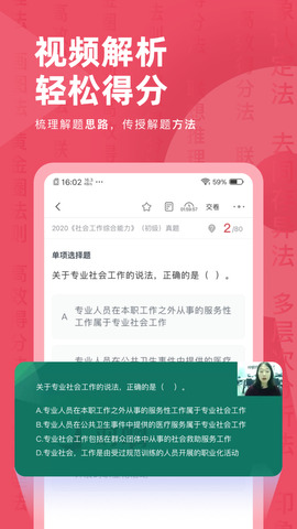 5.考前冲刺:提前熟悉社工师考试题型,让您考试经验大增。