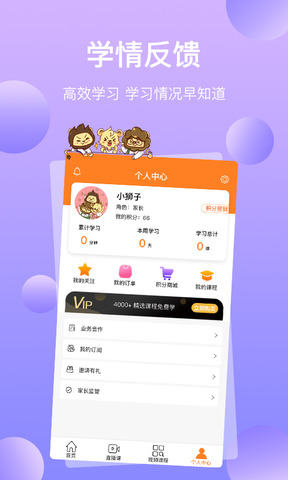三只狮子是一款专门为儿童打造的线上学习软件,上面为儿童提供了非常丰富的科目学习课程,让孩子可以在线上进行轻松的学习,软件上面还为孩子提供了非常有趣的动画课程以及好玩的课堂互动,帮助孩子更加轻松的融入课堂的学习氛围,更好的投入学习,这样能够有利于提高孩子的学习兴趣。三只狮子app采用网上直播授课的方式,专业的老师辅导教学,课程丰富随意选择,根据孩子的爱好或者兴趣选择,这样学起来要轻松很多。感兴趣的小伙伴可以来下载使用。