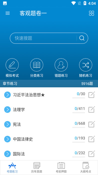 司法考试宝典是一款司法考试软件,功能强大,有海量的题库,软件会自动收藏错题,进行强化训练,还有模拟考试功能,帮助用户试水,更有大纲考点,正确引导学生学习的方向。