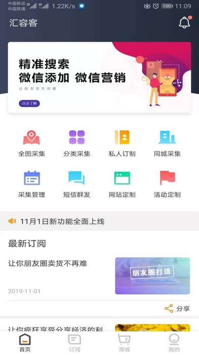 汇容客app下载是一款非常优秀的营销推广软件,包括收集管理、流量引入、商品资源等,以及各种教程和技巧,它能营销自己的产品,获取更多的客户资源,多种多样的营销信息和宝典为用户提供了让用户在营销中得到提升的手段,使自己能迅速达到营销的目的。让你获得宝贵的经验,同时具有定向搜索、一键添加、产品推广、营销等多种实用高效的功能,有需要的用户朋友快来将汇容客app下载到手机使用吧!