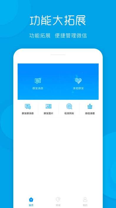 一键群发介绍一键式群发是一款非常好用的微商营销软件,以群发为主要功能特色,支持按好友分组群发,解决以往群发一个个选择好友的麻烦操作,节假日祝福语句,用户一键即可复制使用,不需要从网络上找到祝福语,而且群发时会自动带上好友的昵称,让好友不再认为你是群发消息。此外,一键群发还具有检测死粉、批量水印、文章公众号、被动加人等微商专属功能,能智能检测无效好友并一键删除,还能为自己的图片加水印,非常适合从事微商行业的朋友使用,有需要的快来下载吧。