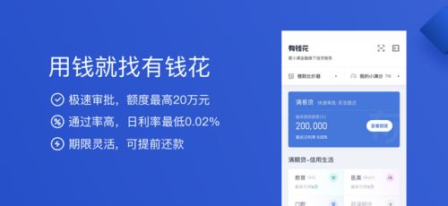 贷款有钱花特色1、贷款额高:500元起借,信用额度达20万元,现款借出后迅速到账。