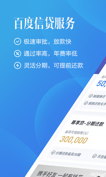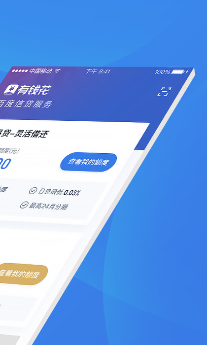 百度有钱花贷款app是一款百度的主营信贷服务的软件,为用户提供最高20万的贷款额度,快捷方式分期,30秒内进行审核,当天即可获得资产,24小时客服,全天候服务,为您解答各种疑问,除此之外百度有钱花贷款app小巧实用,功能全面,这里有多种借贷模式,信用循环现金贷款,纯信用,无抵押,申请方便,审批快捷,循环使用,满足您日常消费周转的资金需求。如果你遇见资金周转困境,或者急需用钱,那不妨来实时这款百度有钱花贷款app,一起来享受属于你的生活吧!