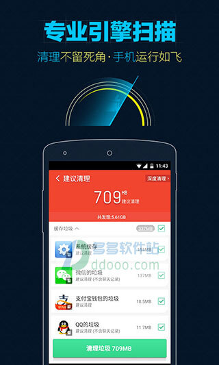 3、世界上第一个火眼引擎,准确分析APP缓存和残留,清洗效果比同类软件高1.5倍以上。