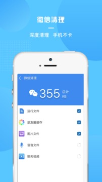 2、微信运行中产生的各类缓存.残留文件一键删除,聊天更加流畅。