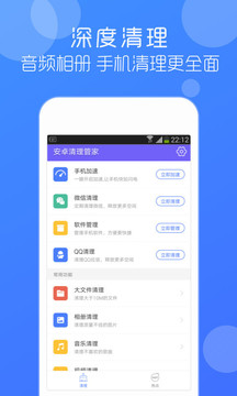 安卓清理管家APP测评1、快速下载通道,软件提供下载加速功能,软件在下载过程中会暂时限制您的其它流量入口。