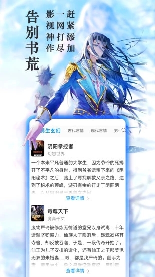 3、覆盖超人气网络小说、都市言情、霸道总裁、玄幻修炼、青春校园等。