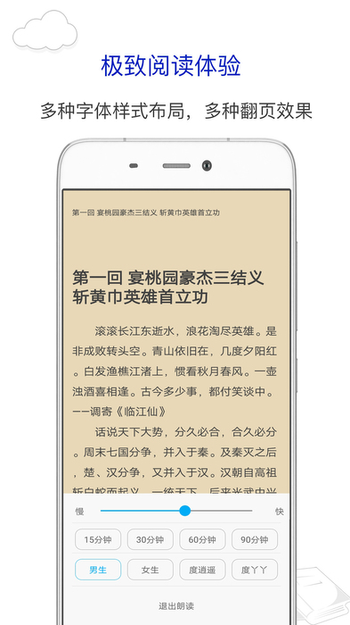4、阅读设置更方便,调整速度更自由,选择阅读时间更随意自由。