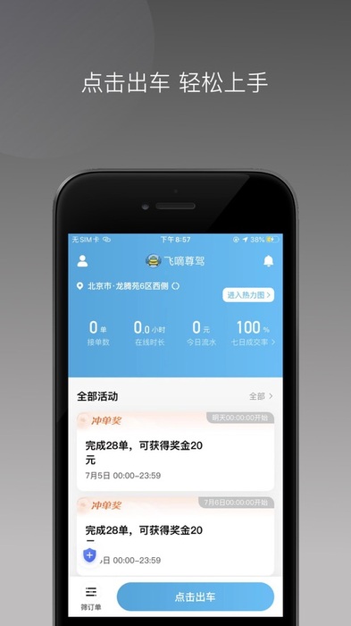 飞嘀尊驾软件功能1.页面非常清晰,可以快速找到接单入口,也可以在第一时间通知大订单。