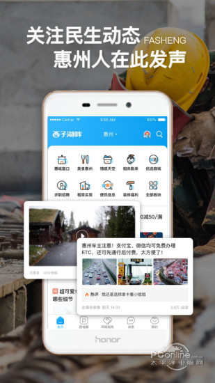 【惠州最新动态,一手掌握】 1.小城大事,风吹草动,一个都不能少 2.最猛爆料,民生消息,紧急通知都知道 【发照片,晒生活】 1.我在惠州,我很好。走到哪,Po到哪,晒出你的美图吧! 2.据说全惠州最萌的娃儿、最美的女神(经)、最有(2)趣(huo)的人都在这! 【同城活动,圈子尽兴玩】 1.你的圈子你做主,喜欢什么就关注什么,随心所欲 2.大吃货、爱摄影、情感交友,总有一个圈子适合你 3.周末出游、亲子郊游、相亲大会,约!约!约! 【查询生活服务信息】 1.查客运 查影讯 找工作 2.小红花兑换。快速报名 特权:首次登陆西子湖畔,奖励2朵小红花