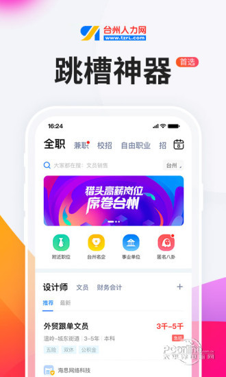 台州人力网,台州招聘求职找工作跳槽神器 【猜你喜欢】自动匹配你想要找的工作并在首页推荐,提升求职者的针对性,减少重复搜索的麻烦。 【消息及时】 1、面试通知及时通知 2、投递简历被查阅及时通知 3、活动及时通知 4、随时提醒企业查看我的简历 【大数据】访客、面试、关注,三个与求职者强关系的数据一目了然的展示,突出了职业生涯的过程,累加,沉淀。 【LBS定位找工作】利用LBS定位技术分析并匹配出附近的工作,让更多的求职者能够找到离家近的职位。 台州人力网-台州人才网-台州直聘-台州同城招聘-台州人力资源招聘网-台州找工作平台-椒江招聘-黄岩招聘,集齐台州名企、上市公司等各种类型企业,有4S店、医药化工、模具、互联网、教育等各个行业工作,网站上有各类线上线下招聘会。上台州人力网,快速求职,找离家近、工资高的好工作