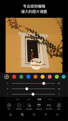 2、还原PS上使用的大部分功能,还可以自由添加各种滤镜和色条调节,帮助您创建更专业的图片。