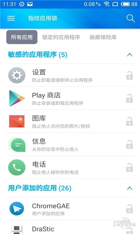安全锁(app lock)是一款保护隐私与安全的软件.相信所有人都反感自己手机里的某些应用被人打开查看,比如邮件,短信.你只需要将你不想被其他人查看的应用设置进去应用安全锁里,设置上密码,查看的时候都需要输入密码,可以有效的保护你的隐私与安全信息.
