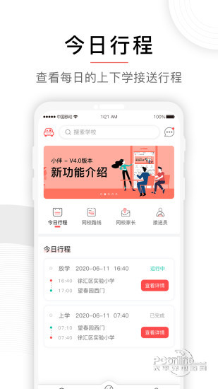 小伴-儿童上学接送及陪伴 小伴是儿童上学接送及陪伴服务的互联网信息平台。 1. 家长可以通过“小伴”寻找到放心靠谱的固定接送员,长期接送孩子上学或提供其它儿童陪伴服务。也可通过平台找到同校路线的家长,分摊接送员费用。 2. 小伴接送平台利用基于地理位置的LBS,音频/视频监控和信息分享技术,让家长能通过小伴App实时查看到儿童的位置及音频/视频。 3. 小伴对接送员进行严苛的筛选和全面的背景审核,家长预先面试,固定接送员长期服务,实时监控,以及全程管家式的客服等,构成了完善的安全保障体系。 小伴,让家长更轻松 孩子更快乐! 官方网站:www.xiaoban.mobi 客服电话:400 875 3080