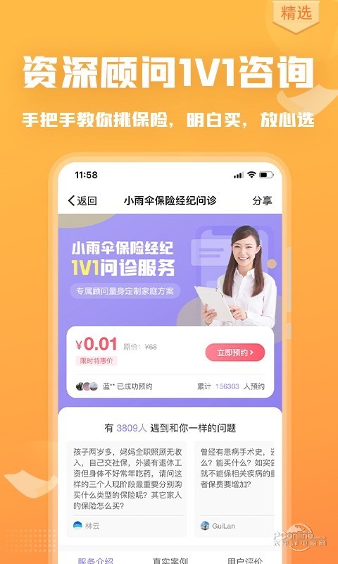 5、特色服务通道,智能保险方案定制、保险问诊、个人保障分析等.
