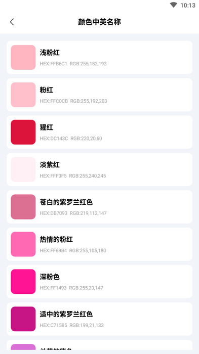 色卡APP的点评1、颜色的种类非常的多,不用担心找不到自己喜欢的颜色。